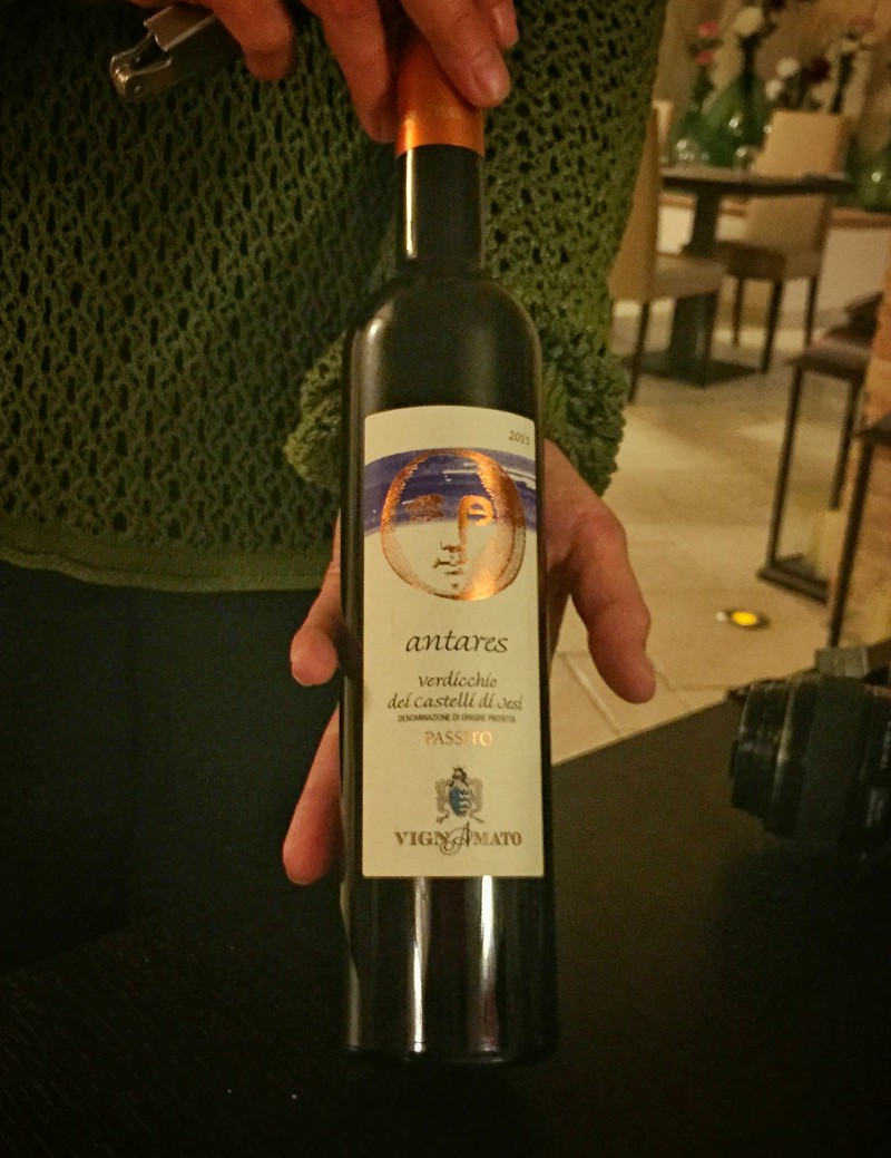Verdicchio dei castelli di Jesi DOC passito (13,5%) – Vignamato Antares: un vino dolce da dessert con un delizioso aroma di albicocca, ha un colore dorato intenso con sfumature ramate. Anche questo vino è ottimo in abbinamento con formaggi stagionati o blu.