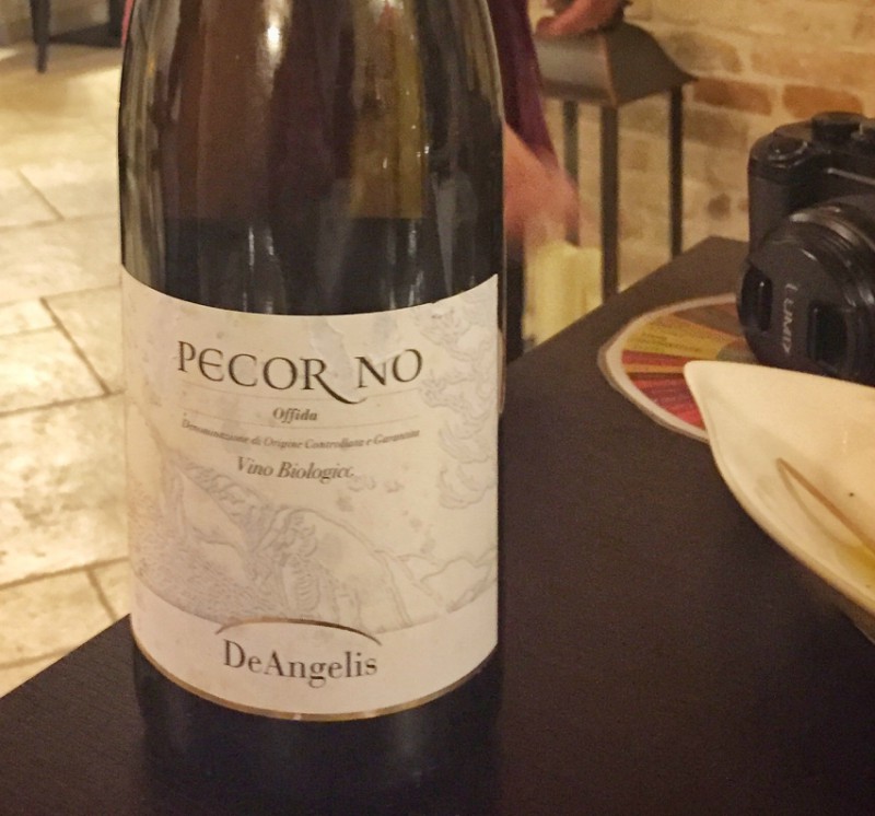 Pecorino Offida DOCG (14%) Tenuta de Angelis: dry white wine 100% made from Pecorino grapes. Fermented and aged in stainless steel VATs. The taste is definitely floral in my opinion. Great with pasta, seafood and cheese. We paired it with some fresh cheeses, and I loved it.